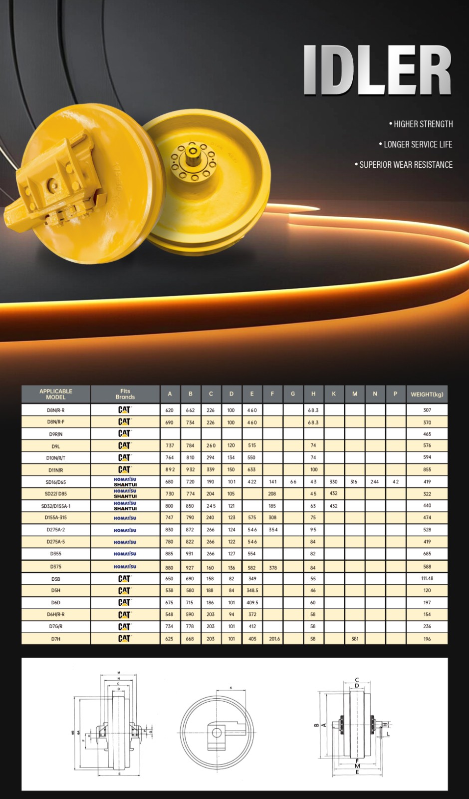 CATERPILLAR D8N/R-R,D8N/R-F,D9R/N,D9L,D10N/R/T,D11N/R,D5B,D5H,D6D,D6H/R-R,D7G/R,D7H